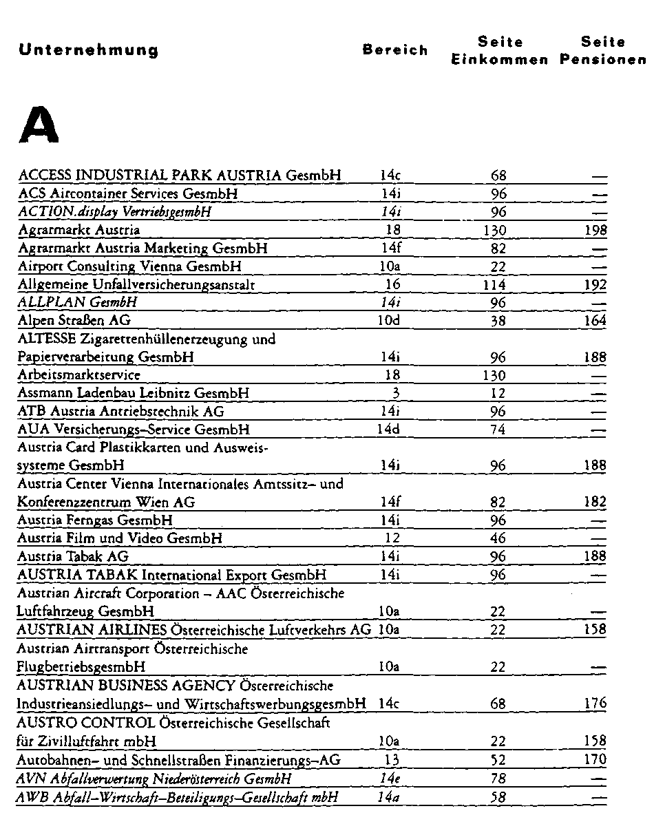 anonymisierte Darstellung im Sinne des Einkommensberichtes des Rechnungshofes,