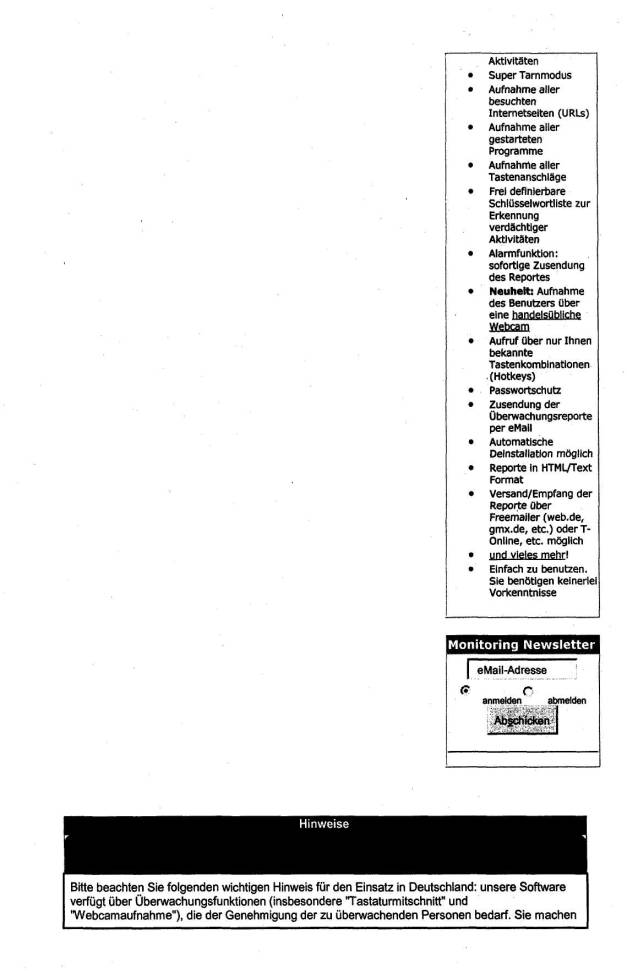 befindlichen Überwachungsprogramme sei von Dezember 2003 bis März 2004 Von