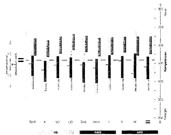 Eindeutiger „Sieger“ dieser Tests waren die AHS-Unterstufen in allen Bundesländern, die in jedem Bundesland um mindestens 100 Punkte besser abschnitten als die NMS. In Prozent ausgedrückt, hat die AHS-Unterstufe je nach Bundesland um 17-25% besser abgeschnitten; die schlechtesten AHS-Schüler sind besser als der Durchschnitt der NMS und vielerorts sind die besten NMS-Schüler schlechter als der AHS-Durchschnitt.
