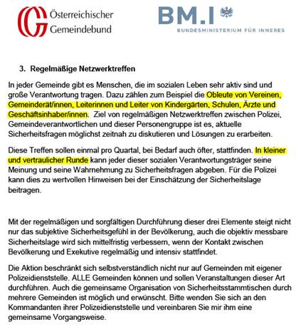 das Bundesministerium für Inneres hat folgenden Brief herausgegeben: