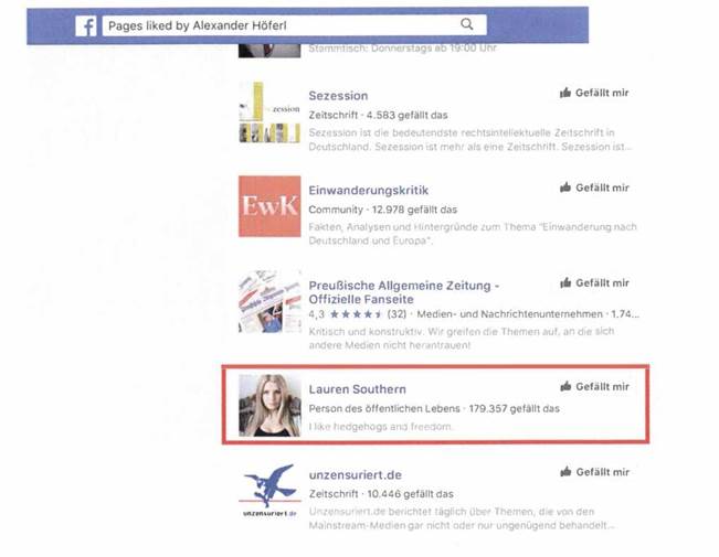 Höferl ist auch Facebook-Fan von Lauren Southern: