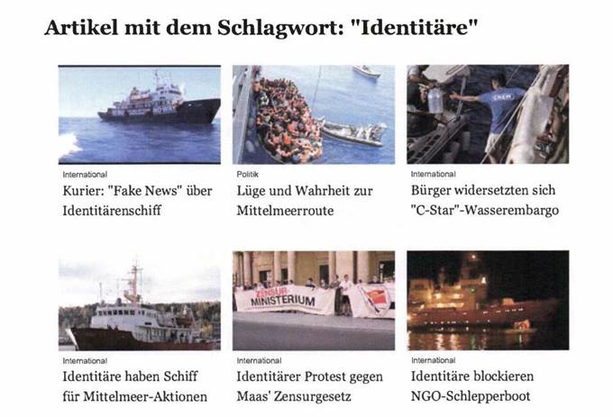 Auch auf der Website „unzensuriert.at“ und „unzensuriert.de“ finden sich unzählige Artikel, in denen Aktionen der Identitären positiv kommentiert werden, so auch die Aktion „Defend Europe“.