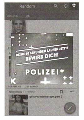 4chan wird auch zur Verbreitung von Kinderpornografie genutzt. Die Webseite ist in Untersektionen gegliedert, sogenannte „boards“. Insbesondere das sogenannte ,,/b/-board“ ist mit solchen Inhalten befüllt. So wurde auch gegenständliche Annonce des Bundesministerium für Inneres neben einem 4chan-Posting mit Titel „girls you wanna rape, part 2“ (Mädchen, die Du vergewaltigen willst, Teil 2) im /b/-board platziert.