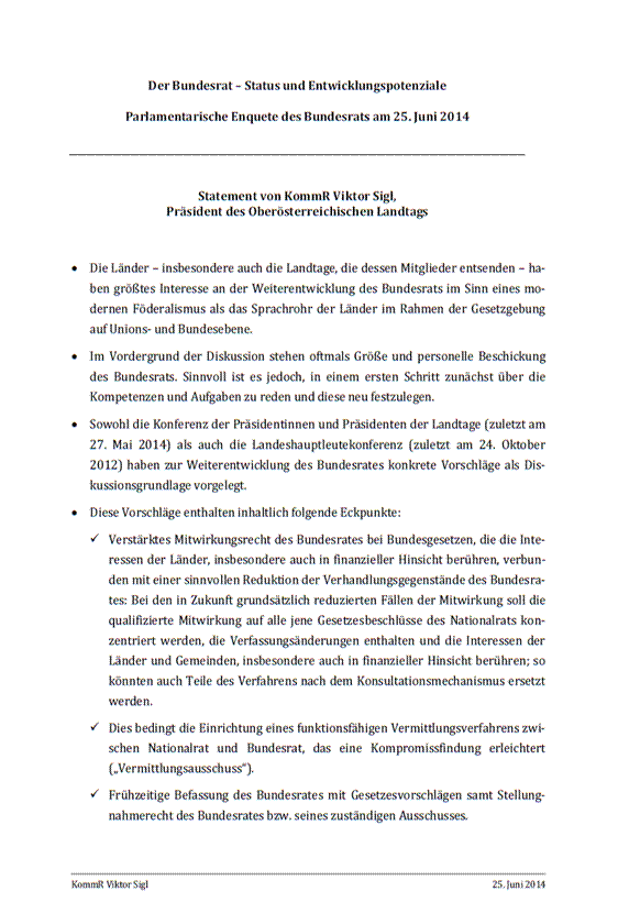 Beim Entsenden oder der Diskussion von Landeshauptleuten oder Mitgliedern der Landesregierung habe ich ein bisschen ein Problem, weil ich das angesichts der österreichischen Verfassung – da ist die Lage anders als in der Bundesrepublik Deutschland – sehr kritisch sehe und eher für unvereinbar halte, aber man muss die Diskussion offen führen, die Sache offen angehen, und ich glaube, die heutige Enquete ist ein guter erster Schritt in diese Richtung.