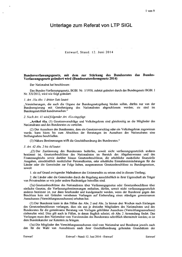Mit Art. 42a B-VG wird das Zustimmungsrecht der beteiligten Länder nunmehr jedoch zu einer ernsthaften Konkurrenz für den Bundesrat. Das Instrument arbeitet - fast - so schnell wie der Bundesrat und hat für die Länder den Reiz, dass sie selbst mitwirken können.