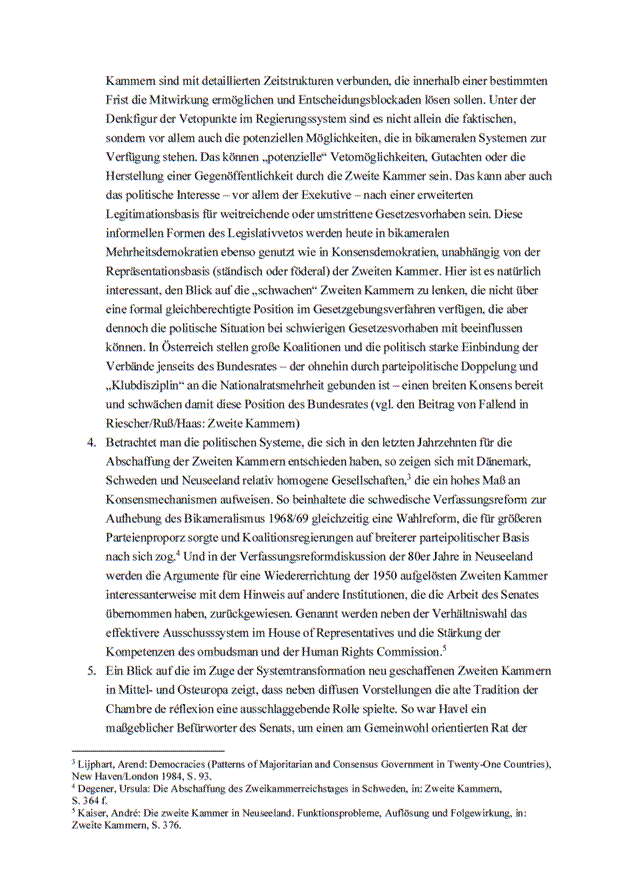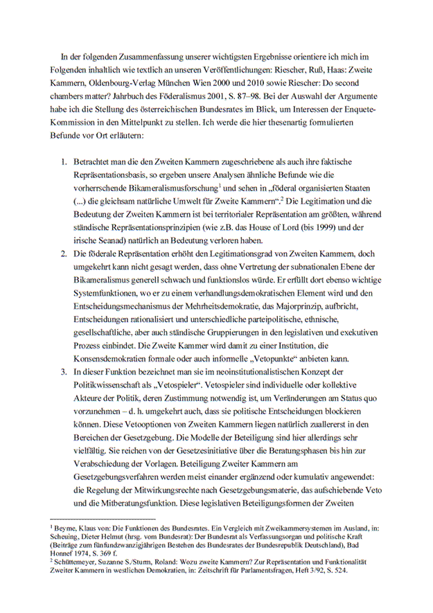Dies bedeutet, dass jede Reform des Bundesrates an beiden Punkten ansetzen muss. Eine Aufwertung der Rechtsstellung des Bundesrates wird wenig bewirken, solange die Fraktionen im Bundesrat weiterhin wie im Nationalrat abstimmen. Dieses idente Abstimmungsverhalten wird, was klarzustellen ist, nicht nur von den Regierungs-, sondern auch von Oppositionsparteien ausgeübt.