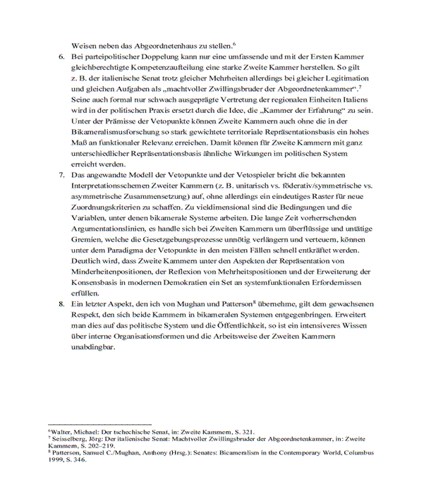 Dennoch bleibt festzuhalten, dass das Ländermodell wie jedes andere Modell auch, das an der Rechtsstellung des Bundesrates ansetzt, nur eines der beiden angesprochenen Defizite des Bundesrates löst. Es stärkt zwar den Bundesrat und trägt dadurch vielleicht zu einer gewissen Emanzipation der Bundesräte bei, garantiert aber nicht, dass diese nicht weiterhin ein ähnliches Abstimmungsverhalten wie ihre Kollegen im Nationalrat tätigen.