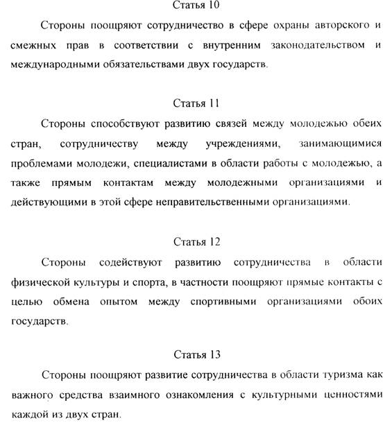 Dieser Artikel ist von programmatischer Bedeutung, da die unmittelbare kulturelle Zusammenarbeit von Organisationen und Vereinigungen außerhalb der staatlichen Verwaltung gerade mit einem Vertragspartner mit der geographischen Ausdehnung der Russischen Föderation ihren besonderen Stellenwert besitzt.