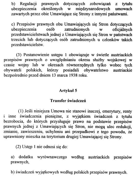 Wie in allen Abkommen sind die Ausgleichszulage aus der österreichischen Pensionsversicherung sowie die entsprechenden polnischen Sonderleistungen vom Export ausgenommen.