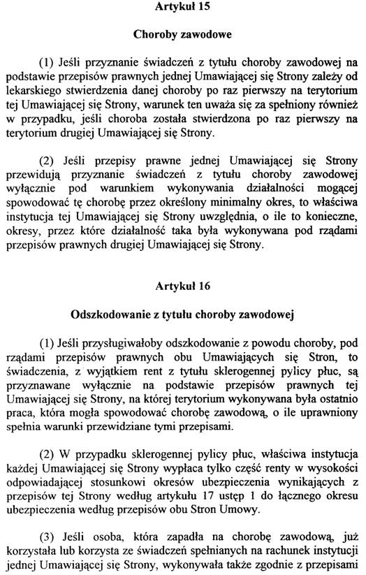 – die erforderlichen Regelungen hinsichtlich der Leistungen bei Berufskrankheiten, wenn in beiden Vertragsstaaten entsprechende Expositionszeiten zurückgelegt wurden (Art. 16 bis 19), wobei in Fällen von Staublungenerkrankungen hinsichtlich der Rentengewährung anstelle der Zuordnung der Leistungspflicht zu dem zuletzt zuständig gewesenen Versicherungsträger eine anteilsmäßige Gewährung der Rente vorgesehen ist.