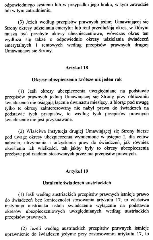 – Art. 19 Abs. 1 sichert die Gewährung der innerstaatlichen Alleinpension, wenn auch ohne Zusammenrechnung der Versicherungszeiten beider Vertragsstaaten ein Anspruch auf eine österreichische Pension besteht.