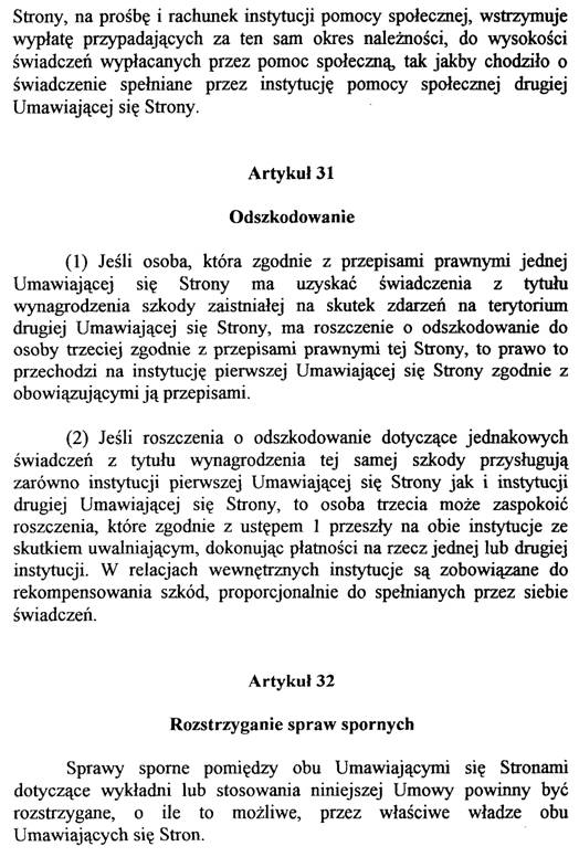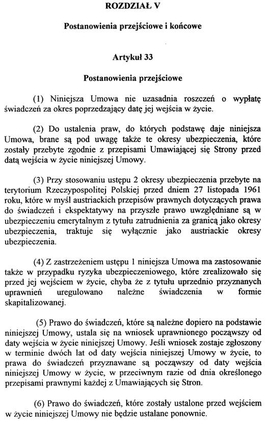Diese Artikel enthalten die üblichen Übergangs- und Schlußbestimmungen (siehe zB Art. 34 sowie Art. 36 und 37 des Abkommens mit Kroatien und Art. 36 sowie Art. 38 und 39 des Abkommens mit Slowenien), wobei durch die ergänzende Regelung des Art. 32 Abs. 3 der Übernahme polnischer Beschäftigungs- und Versicherungszeiten im Rahmen des Auslandsrenten-Übernahmegesetzes (ARÜG) und der entsprechenden Bestimmungen des § 116 Abs. 6 GSVG bzw. § 107 Abs. 6 BSVG Rechnung getragen wurde. Durch diese Regelung wird insbesondere für die in Österreich wohnenden Pensionsbezieher, in deren Pension entsprechende Zeiten zu berücksichtigen sind, eine Feststellung einer polnischen Leistung für diese Zeiten vermieden, die zu einer entsprechenden Kürzung der österreichischen Leistung führen würde, sodaß sich – außer einem enormen Verwaltungsaufwand – für den Berechtigten keine Verbesserung aus dem Abkommen ergeben würde.