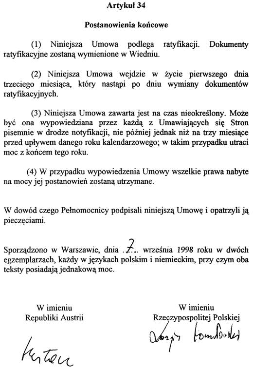 Nach Durchführung des innerstaatlichen Begutachtungsverfahrens wurden die noch erforderlichen Änderungen bei weiteren Besprechungen im Mai 1997 vereinbart und das Abkommen schließlich am 7. September 1998 in Warschau unterzeichnet.
