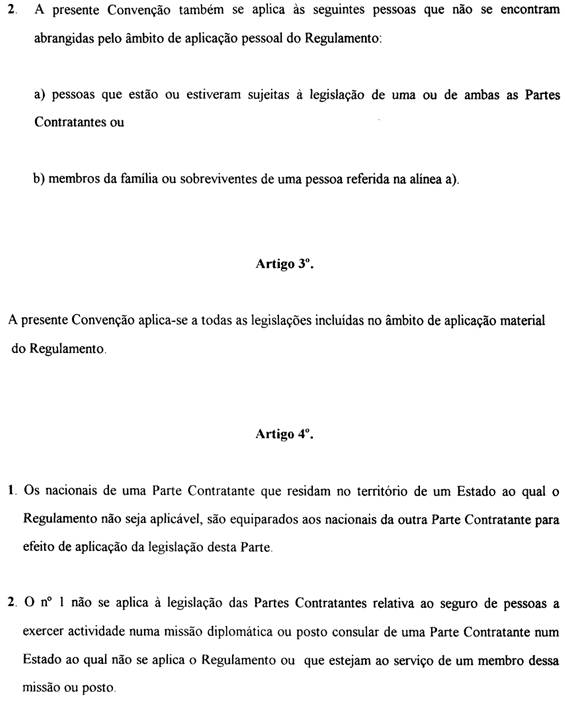 Zur Vermeidung ungewollter Auswirkungen wird ergänzend vorgesehen (Abs. 2), daß der Gleichbehandlungsregelung keine Wirkung hinsichtlich der nationalen Regelungen betreffend die Versicherung der bei einer amtlichen Vertretungsbehörde eines Vertragsstaates in einem Nicht-EG/EWR-Staat beschäftigten Personen (in Österreich § 3 Abs. 2 lit. f ASVG) zukommt. Dadurch wird ausgeschlossen, daß portugiesische Staatsangehörige, die zB bei der österreichischen Botschaft in Tokio beschäftigt sind, der Versicherungspflicht in Österreich unterliegen.
