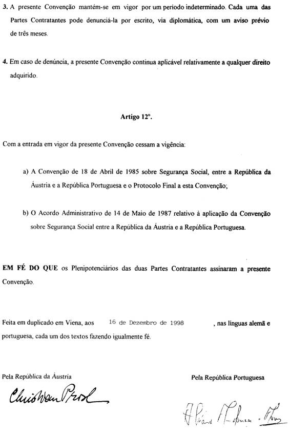 Geschehen zu Wien, am 16. Dezember 1998 in zwei Urschriften in deutscher und portugiesischer Sprache, wobei beide Texte in gleicher Weise authentisch sind.