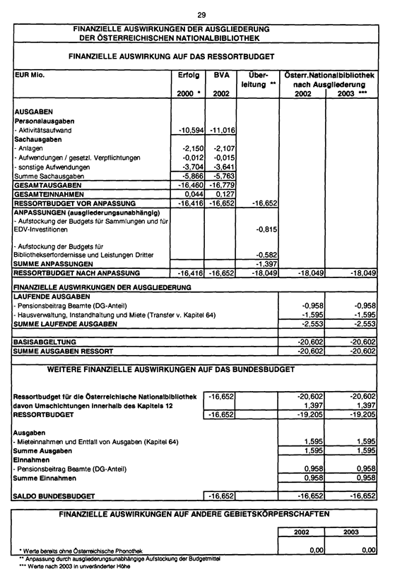 Finanzielle Auswirkungen der Ausgliederung der Österreichischen Nationalbibliothek: