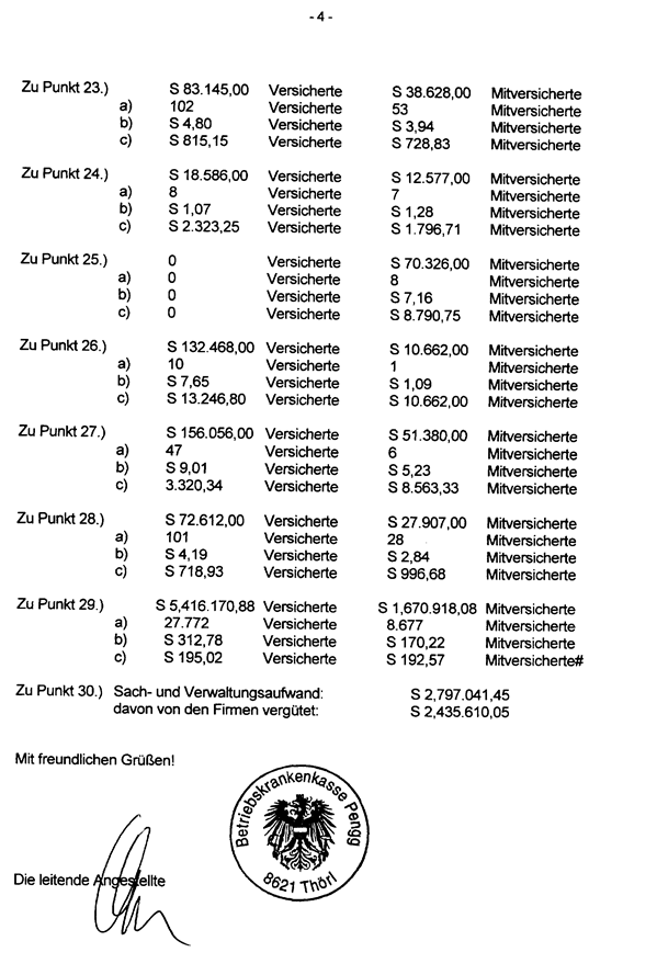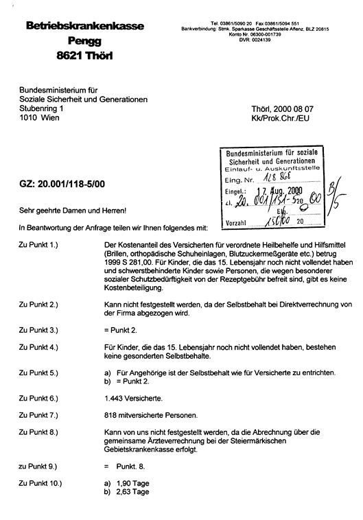 und Selbstbehalte bei der Betriebskrankenkasse Pengg, Nr.1086/J, wie folgt: