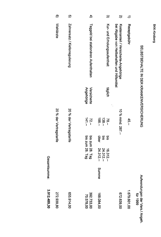 und Selbstbehalte bei der Betriebskrankenkasse Kindberg,