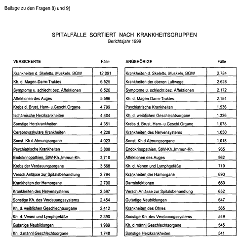 ad 18) Im Jahr 1999 betrug die Gesamtzahl der Verpflegsfälle für Versicherte 113.478;