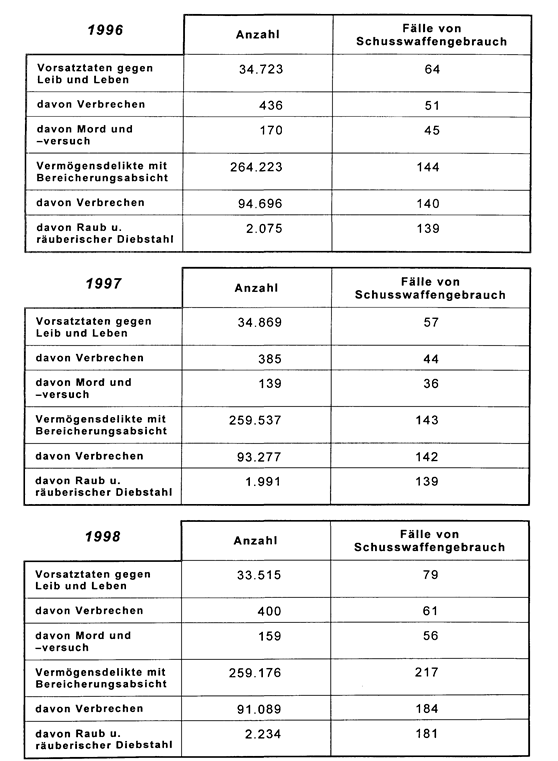 denen Schusswaffen zum Einsatz gelangten, nämlich die Vorsatztaten