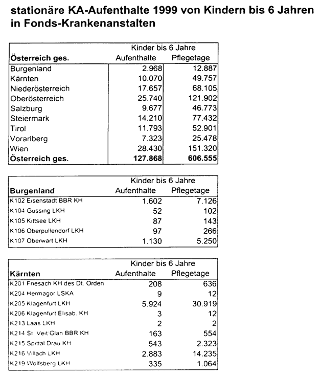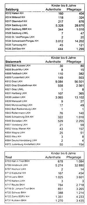 lassungen) mit 606.555 Pflegetagen gemeldet, die Kinder bis 6 Jahre betrafen Die