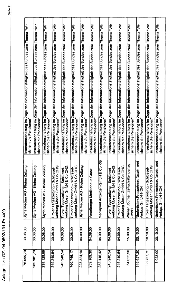 Bundesregierung für Werbekampagnen, Inseratenschaltungen und fälschlicherweise