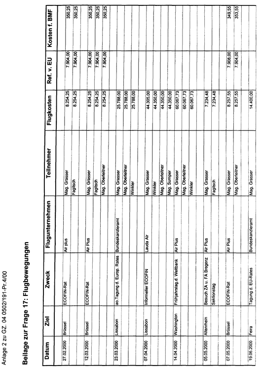 Alle Flugbewegungen sind im Detail aus der beiliegenden tabellarischen Aufstellung