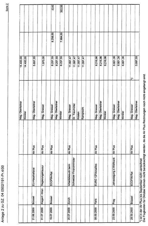 aus dem Titel Repräsentationsaufwendungen betragen für den Zeitraum 4. Februar 2000 bis