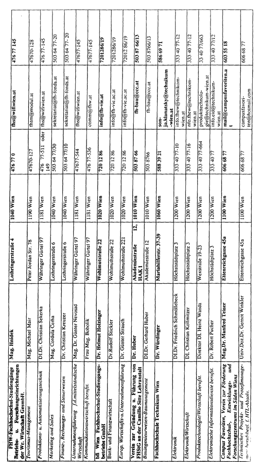 dierung der bestehenden Standorte an. In Wien gibt es derzeit die folgenden Standorte im Fach -