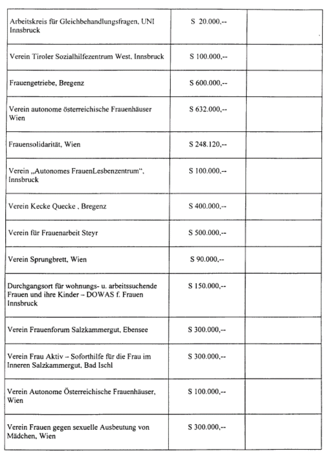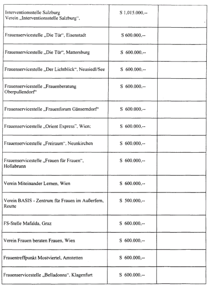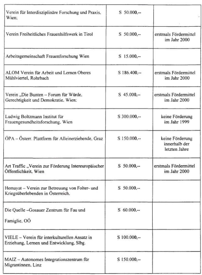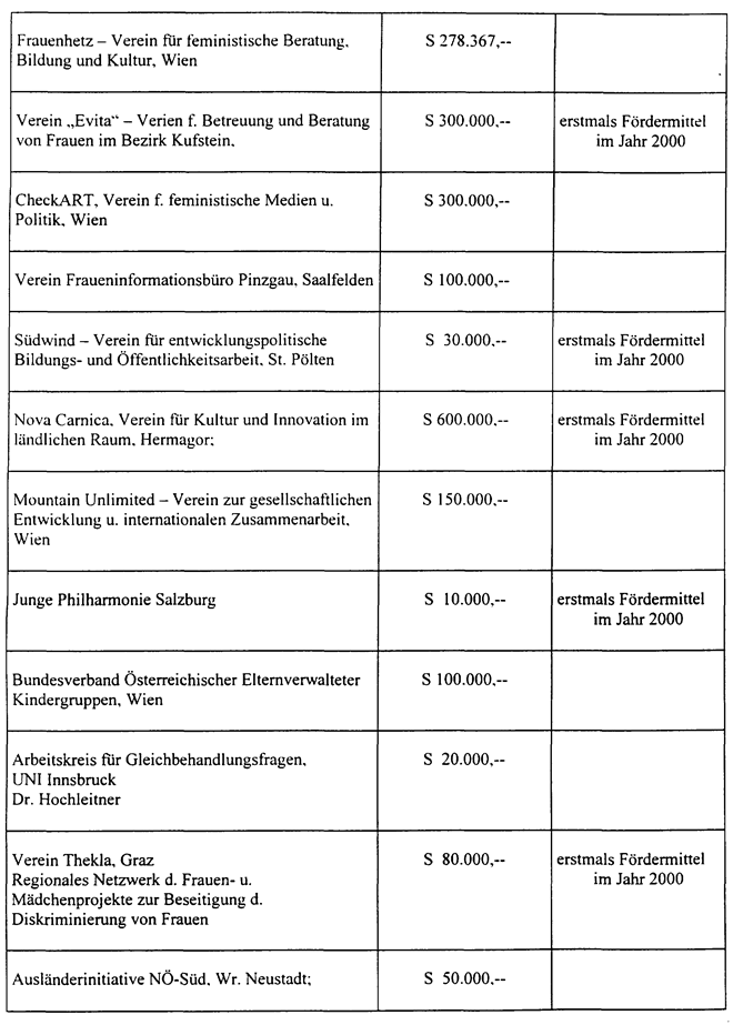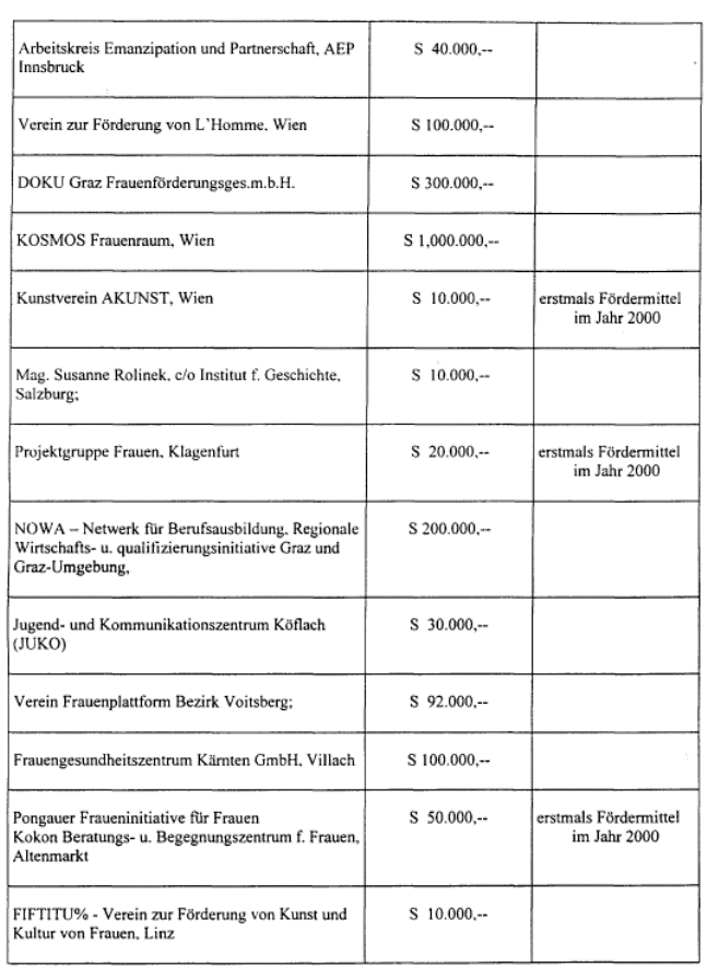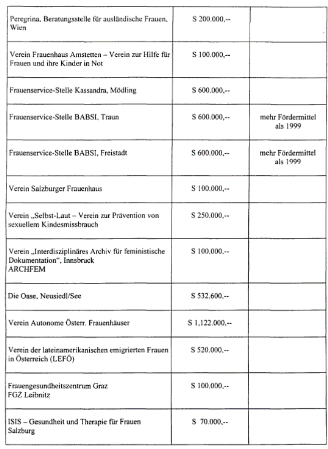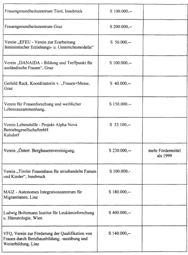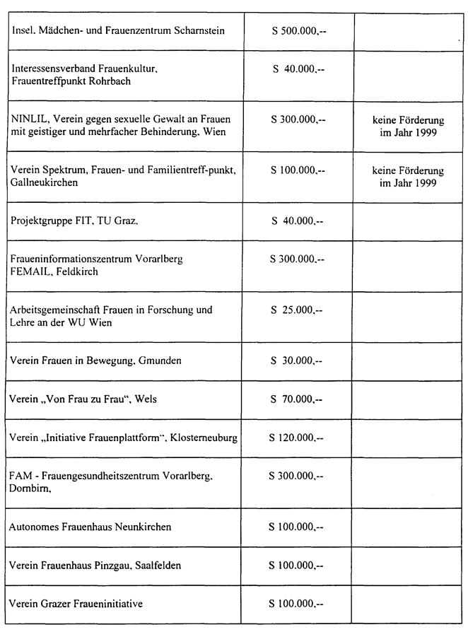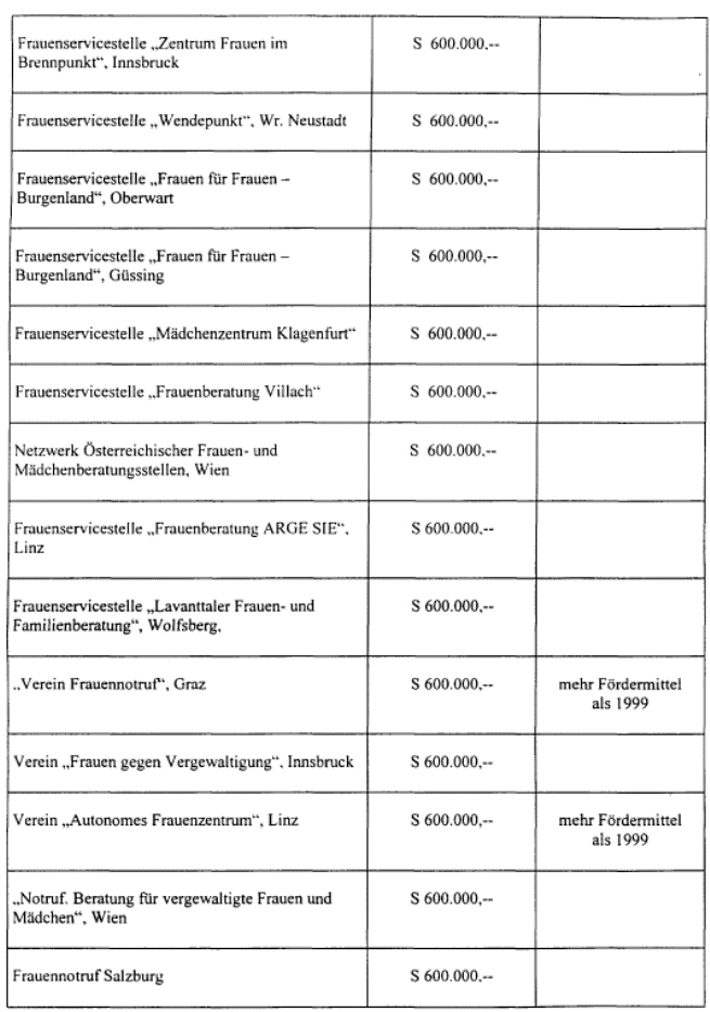 amt/Frauenministerin subventioniert wurden, gegenüber dem Vorjahr beibehalten,