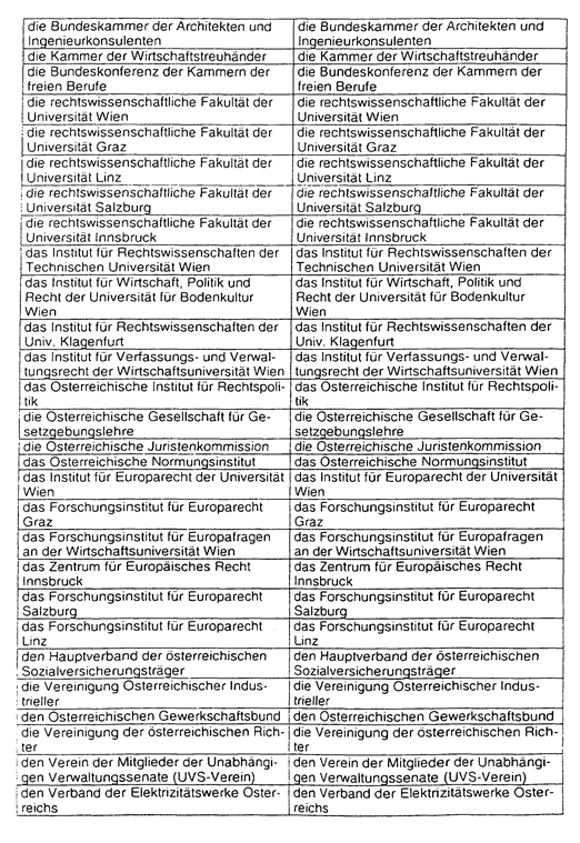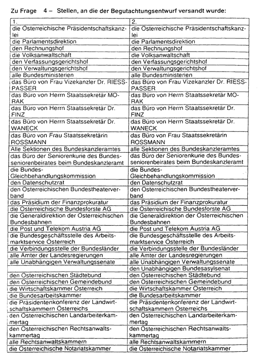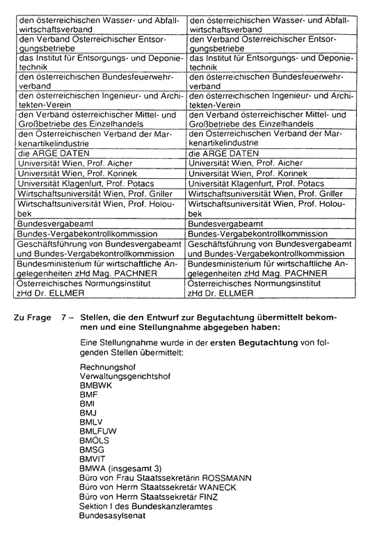 Zu Frage 22 - Stellen, an die der Begutachtungsentwurf versandt wurde: