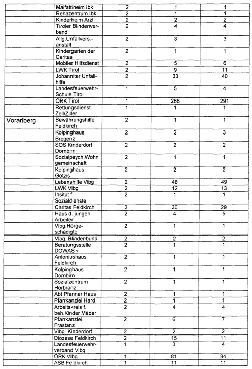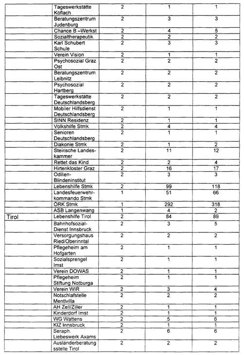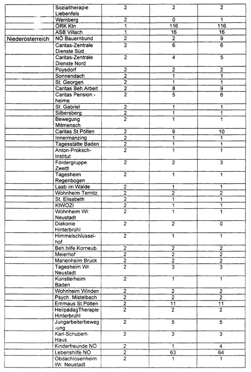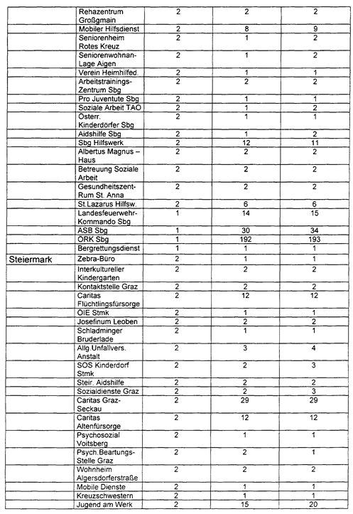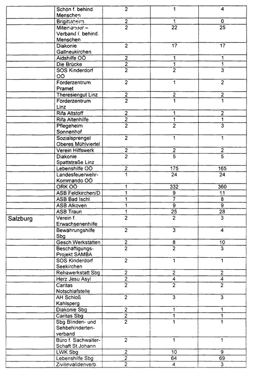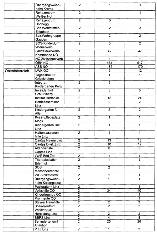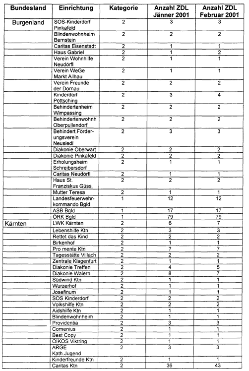 Kopie des Bundesvoranschlages für das Jahr 2001 für den Bereich Zivildienst zu entnehmen.