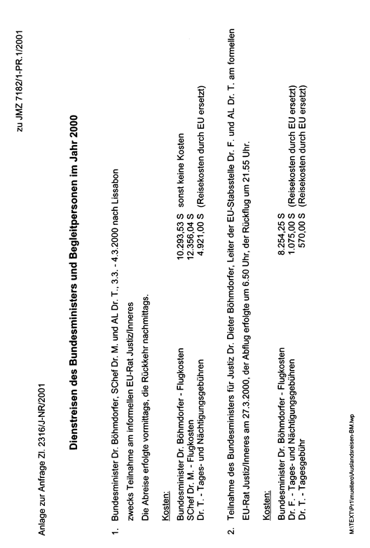 für Dienstreisen und Veranstaltungen im Jahr 2000“ gerichtet.