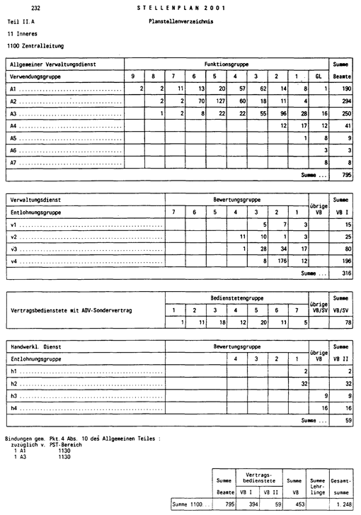 Im Stellenpian für das Jahr 2001 sind bei Kapitel 11 „Inneres“ insgesamt 78