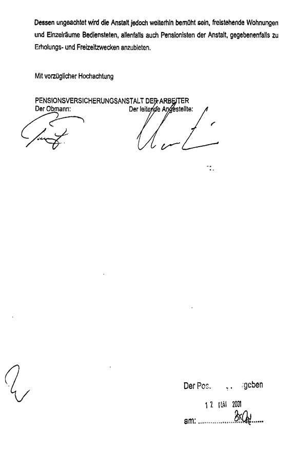 Wohnungen ist der beiliegenden Stellungnahme der Pensionsversicherungsanstalt