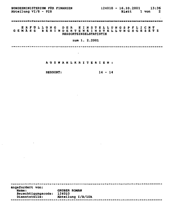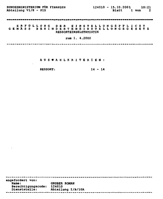 Der jährlich wiederkehrenden Anfrage über Soll- und Ist-Stand der Beschäftigung von Behinderten im Bundesdienst werden Daten zu Grunde gelegt, die seit Jahren - bisher unbeanstandet - nach denselben Kriterien ermittelt wurden. Was sich geändert zu haben scheint, sind die Auswertungen aus dem Bundesrechenzentrum, die offenbar einen Widerspruch in der Darstellung der relevanten Zahlen enthalten.
