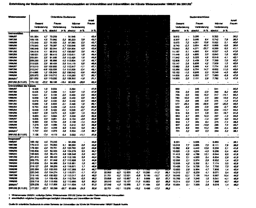 Salzburger Universitäten (Juni 2001) und Einrichtung einer Koordinationsstelle für Frauen-