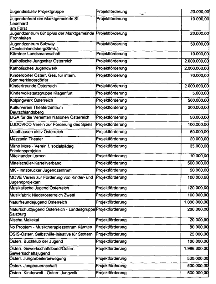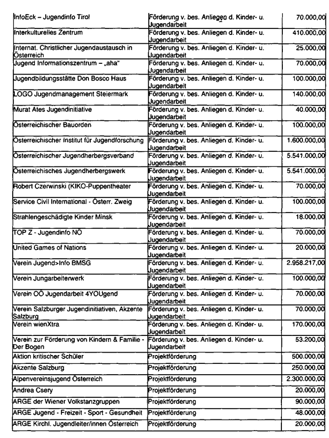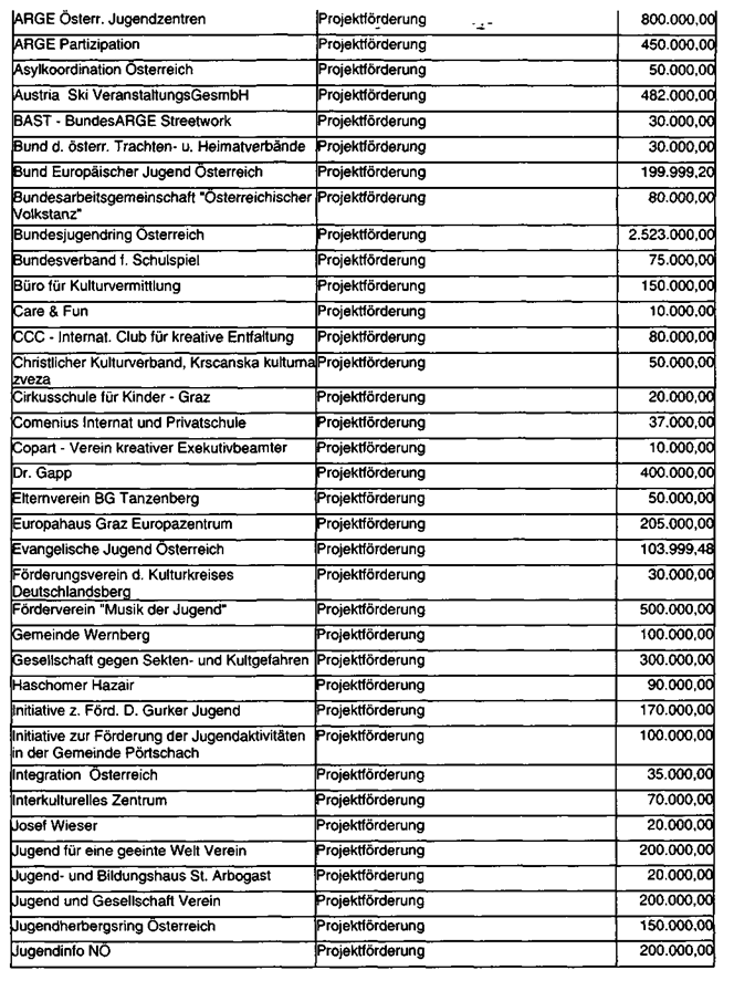 öS 200.000,-- (€ 14.534,57) und für 8 Projekte gemäß