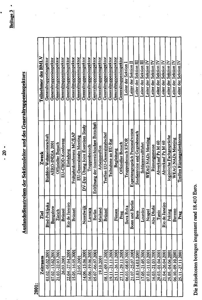 detaillierte Auflistung sämtlicher Dienstreisen inkl. der Bediensteten des