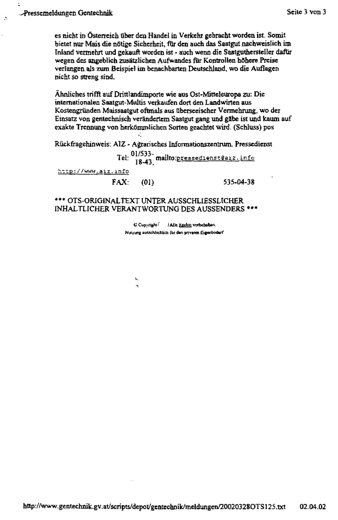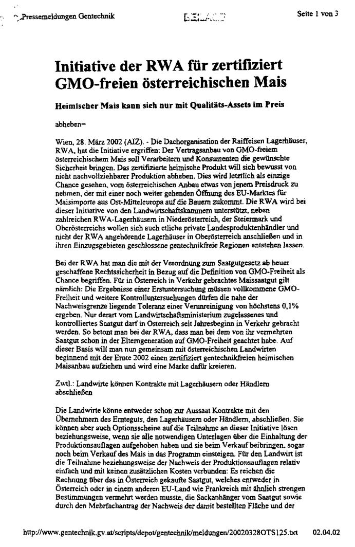 zu schaffen beabsichtigt (siehe beiliegende Pressemeldung des AIZ-Agrarischen