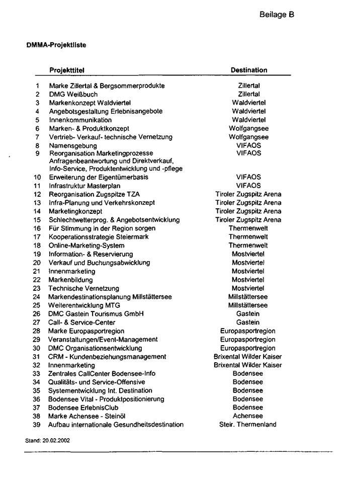 Projektliste ist im Anhang (Beilage B) zu entnehmen, wobei Anpassungen