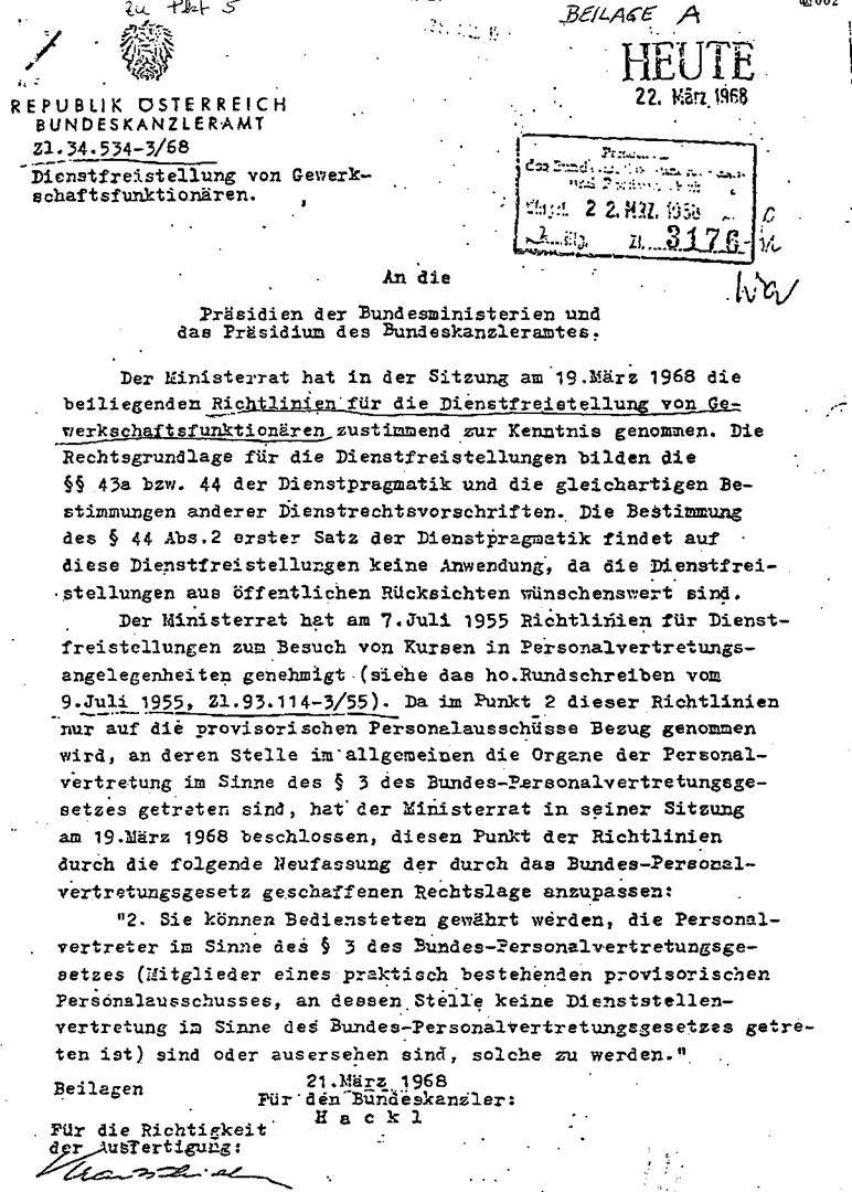 Dazu siehe die Kopie des Beschlusses der Bundesregierung aus dem Jahre 1968. (Beilage A).