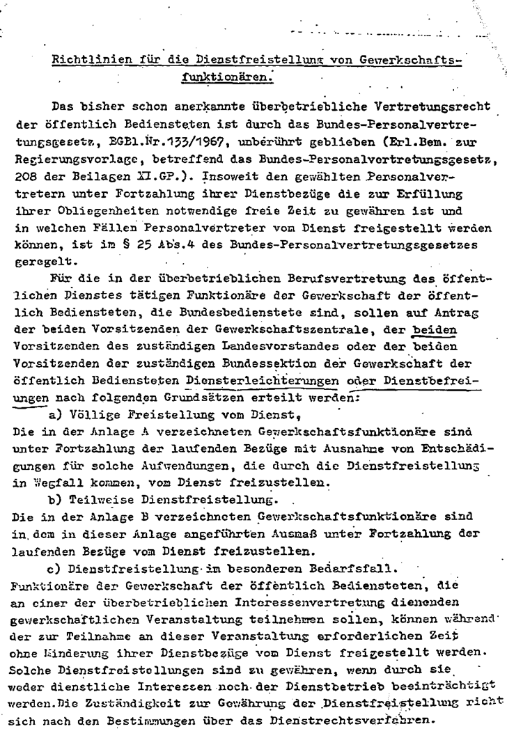 Rechtsgrundlage für die Dienstfreistellungs-Richtlinien aus dem Jahre 1968