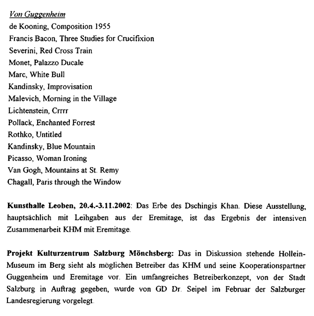 und aus dem Guggenheim-Museum und dem KHM werden in einer