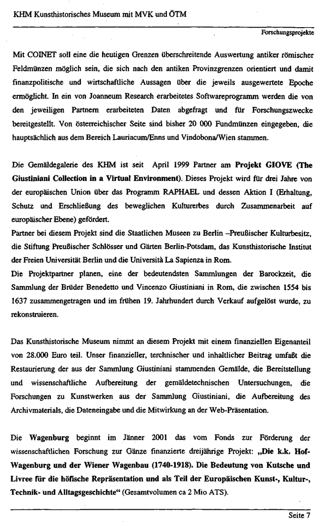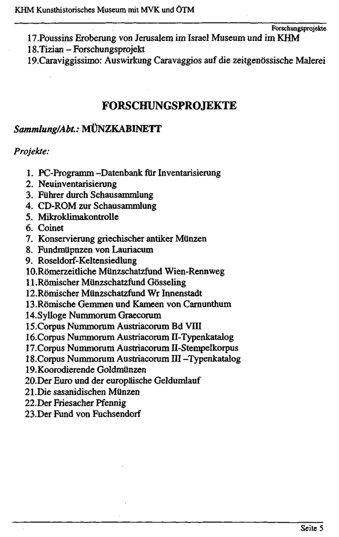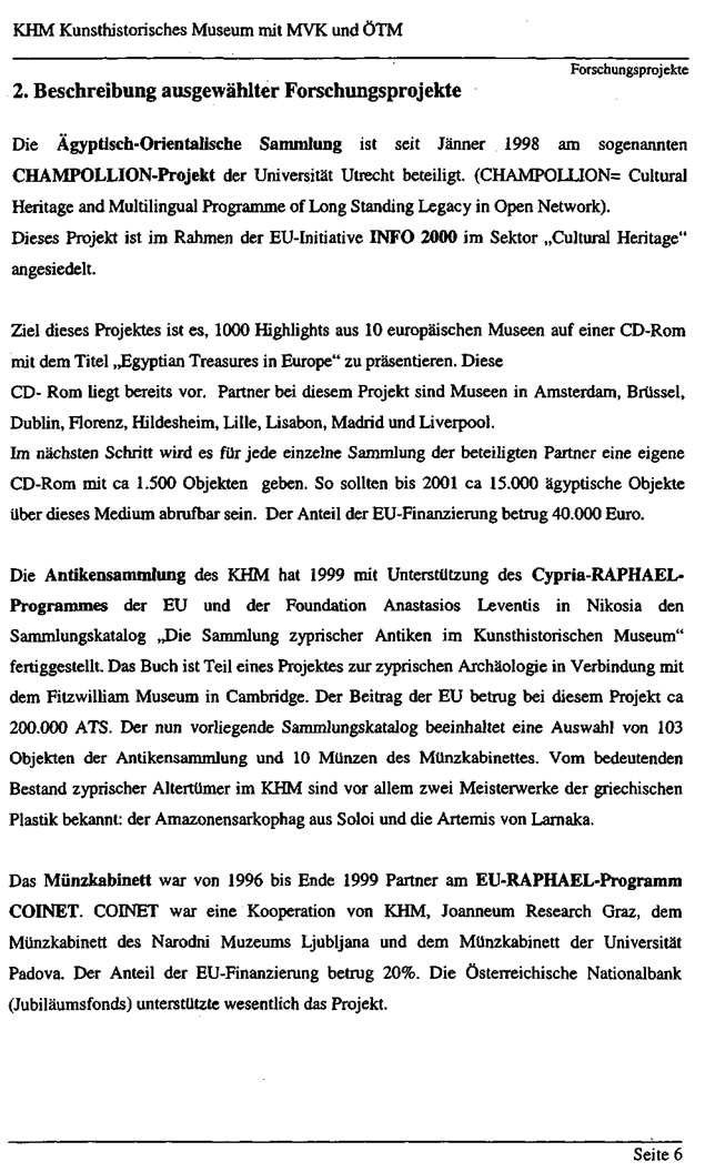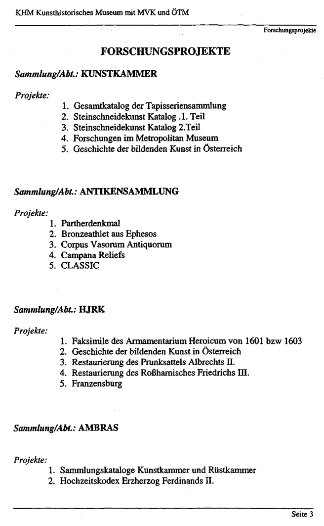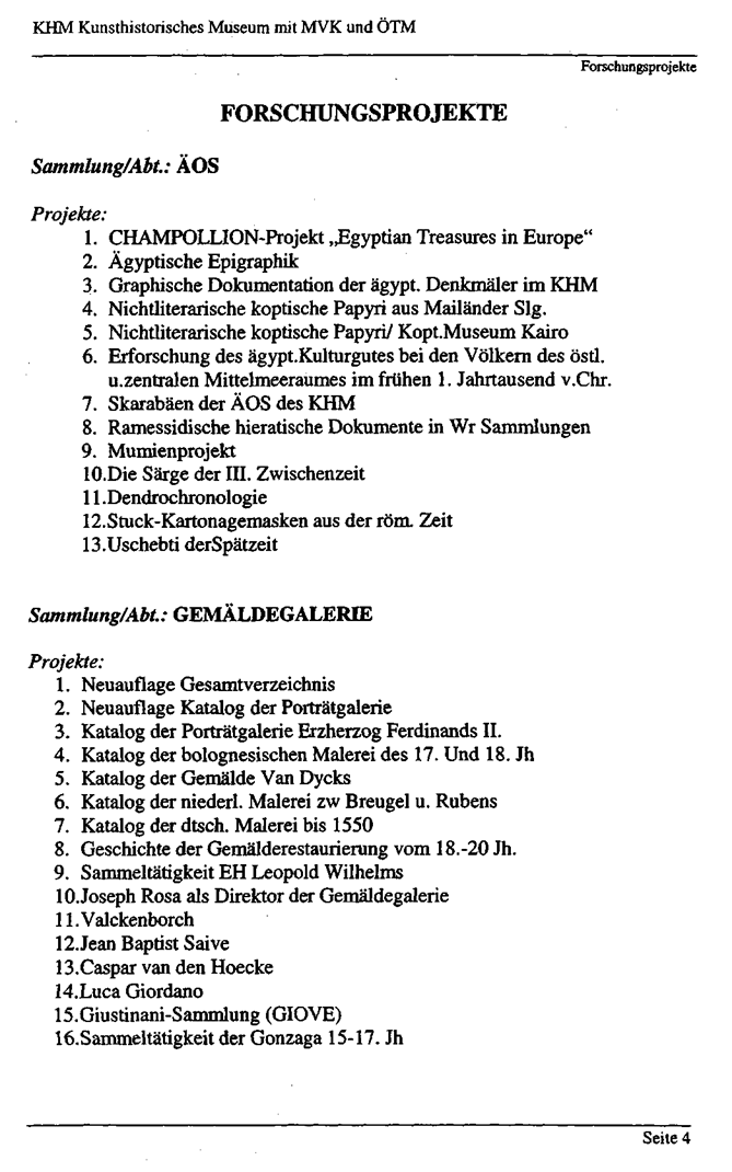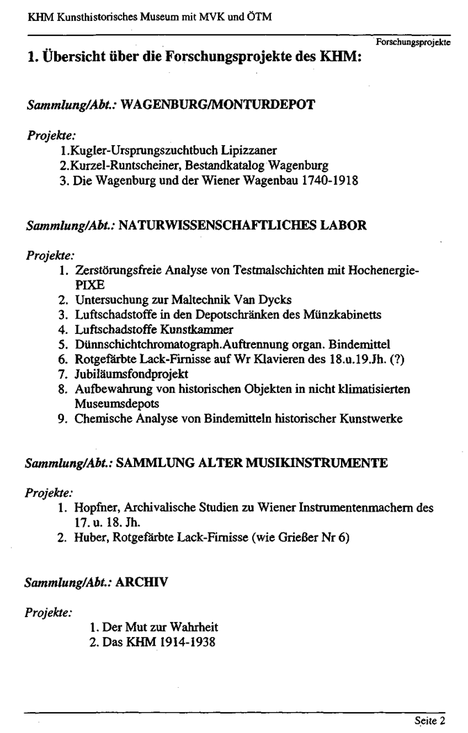 auf beiliegende Übersicht über die Forschungsprojekte des KHM. Zur