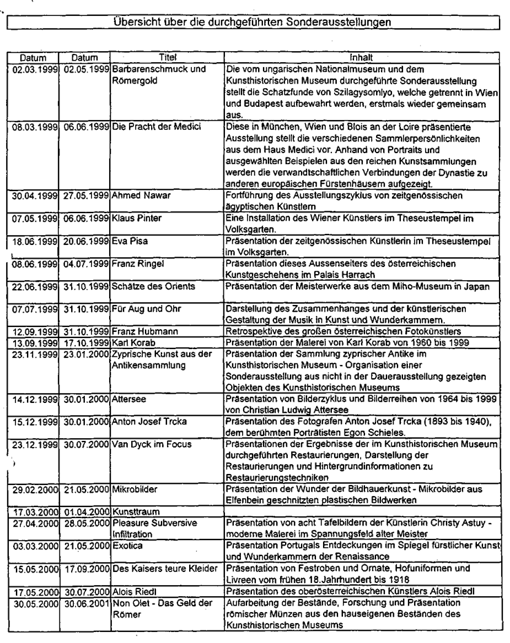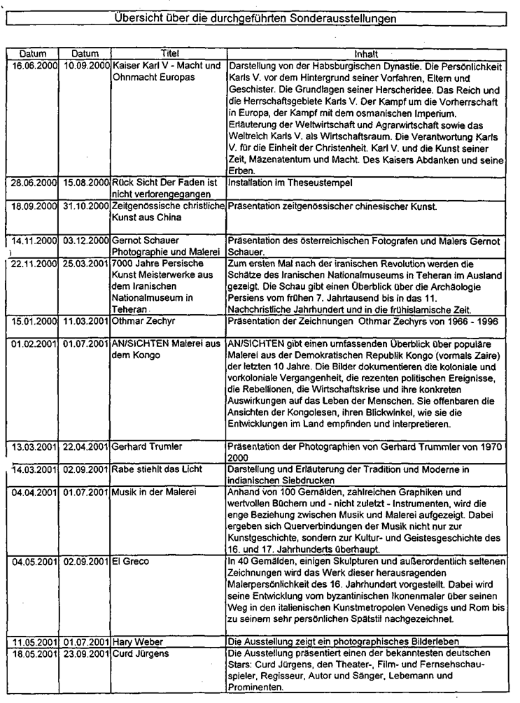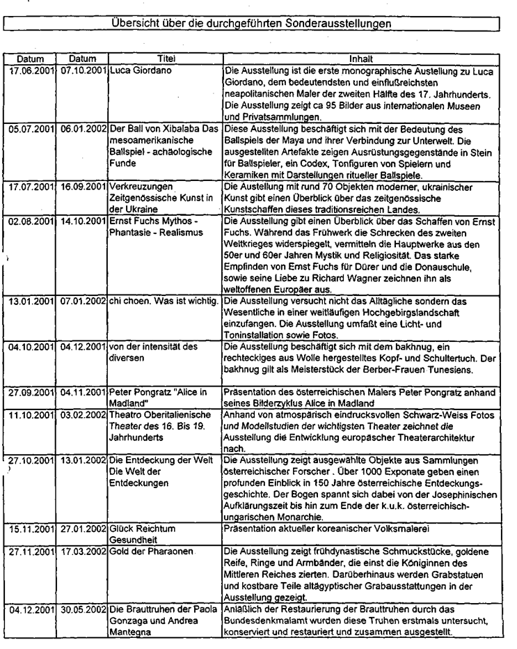 aufgewendet. Die Erhöhung der Kosten der Sonderausstellungen im Jahr 2001