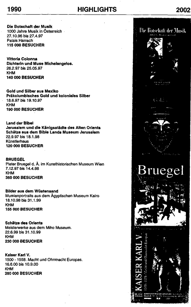 Seit der Vollrechtsfähigkeit wurde im Kunsthistorischen Museum eine Vielzahl von