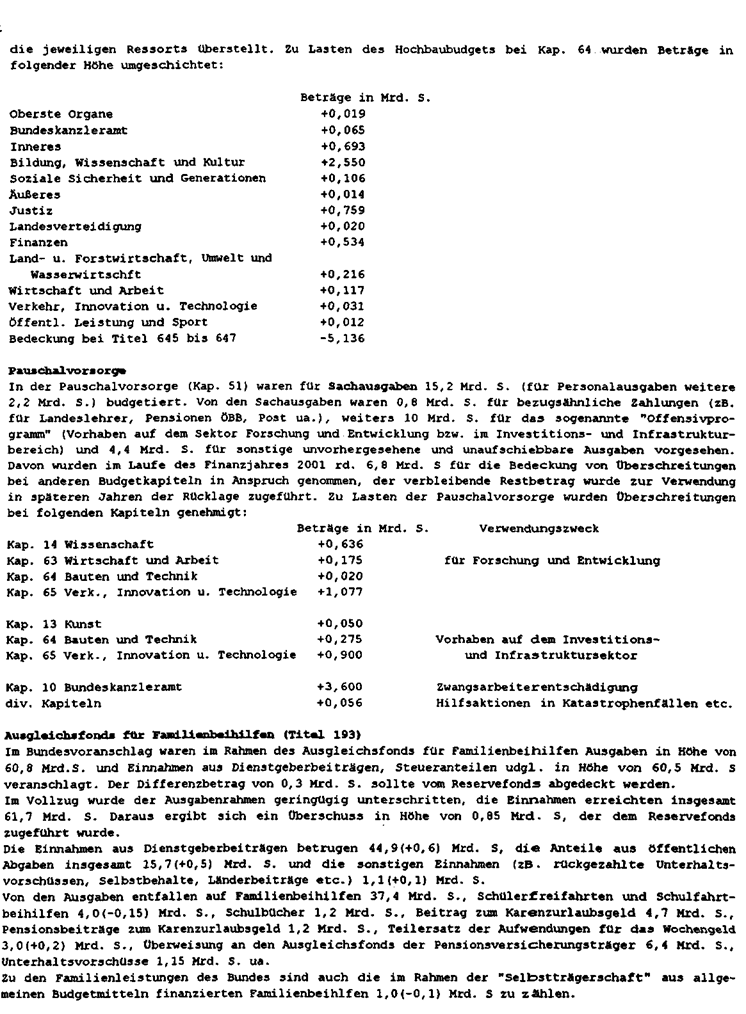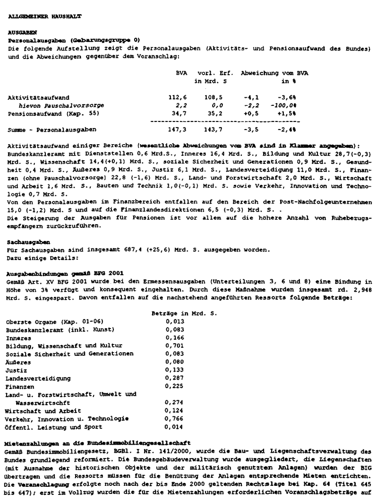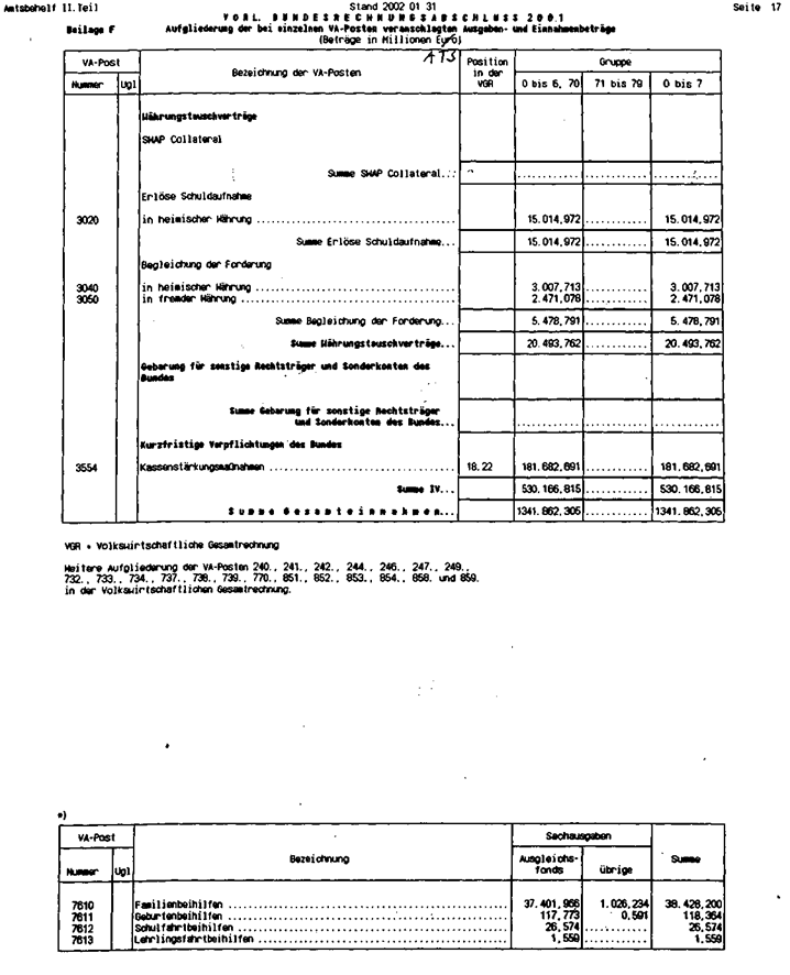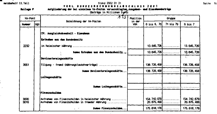 Beilage (“Vorläufiger Gebarungserfolg 2001") verweisen, die