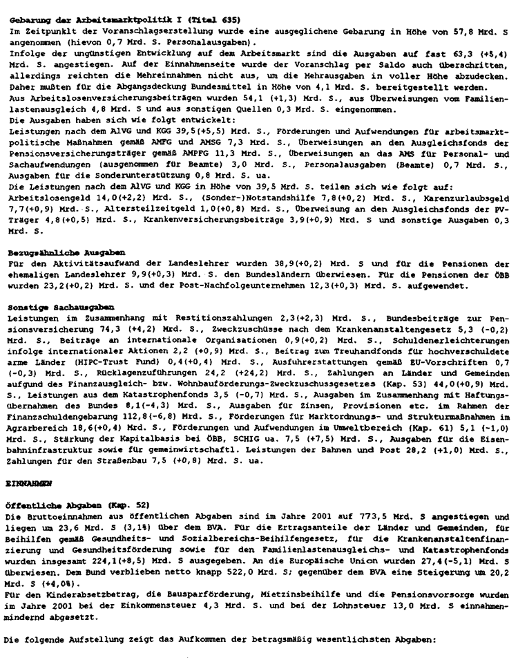 • österreichische Wirtschafts- und Budgetzahlen 2001/2002