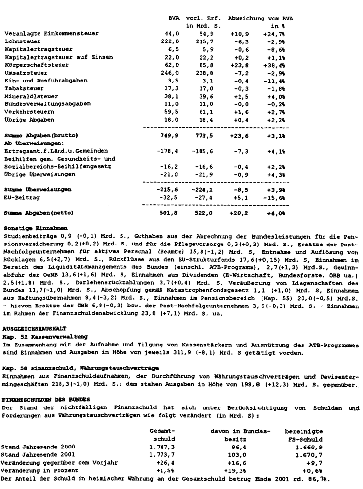 vorläufigen Gebarungserfolges 2001 anlangt, möchte